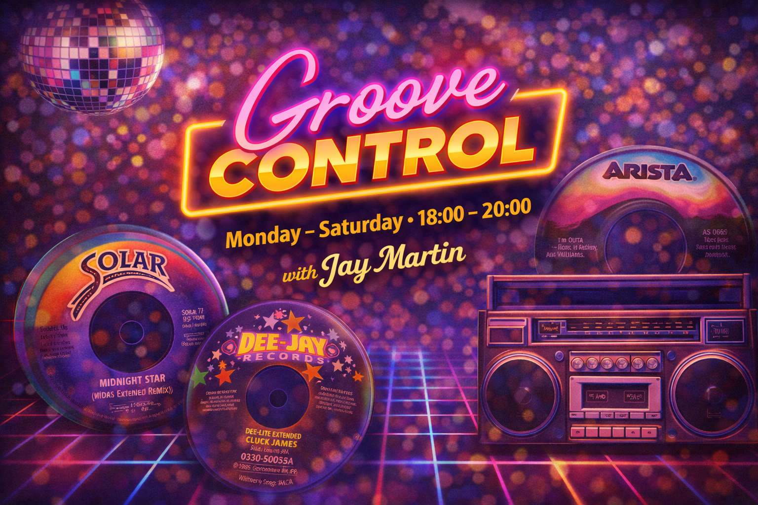 Groove Control with Jay Martin brings a daily dose of soulful grooves, funk-infused rhythms and feel-good music to your early evenings. Broadcasting Monday to Saturday from 6pm to 8pm, Jay delivers a carefully curated selection designed to keep the energy high and the groove locked in as you unwind from the day.